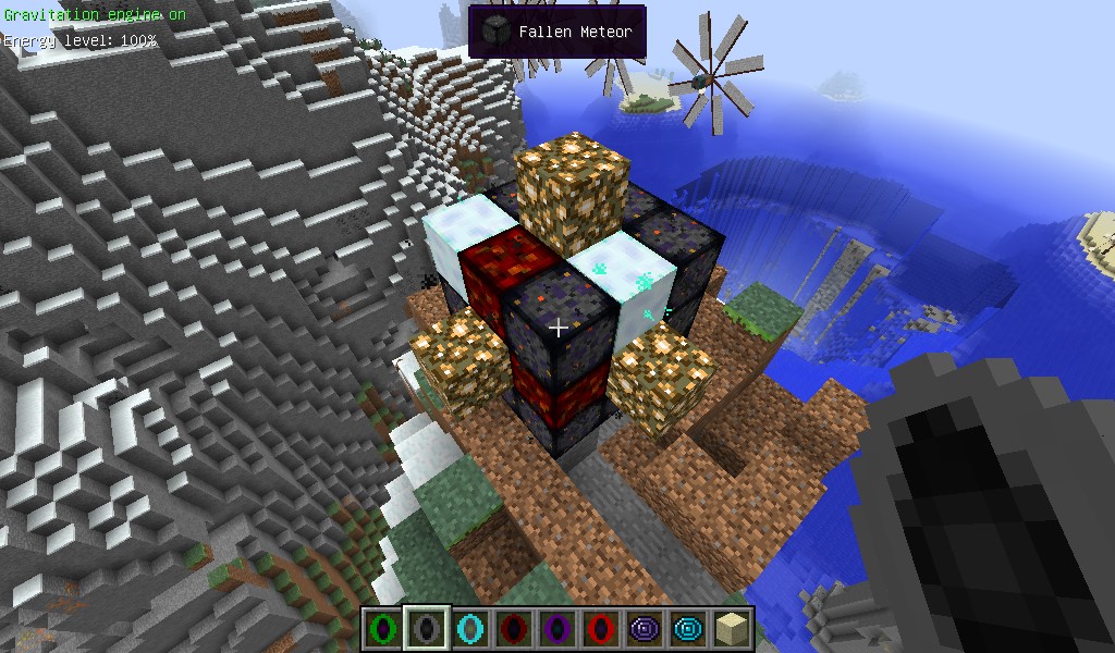 Meteorite、Kreknorite、Frezarite が混ざった3*3*3の立方体と、各面の中央にグロウストーンがくっついたブロックが出現する